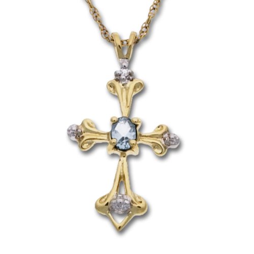 Buy 10k Yellow Gold Aquamarine Cross Pendant w/ Diamond Accent Now