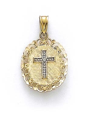 See more technical detailsBuy 14k Two-Tone Oval Cross Diamond Pendant Now