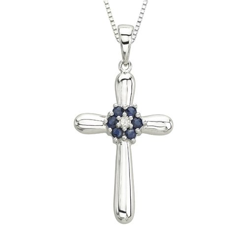 See more technical detailsBuy 14K White Gold 0.02 ct. Diamond and 1/5 ct. Sapphire Cross Pendant with Chain Now