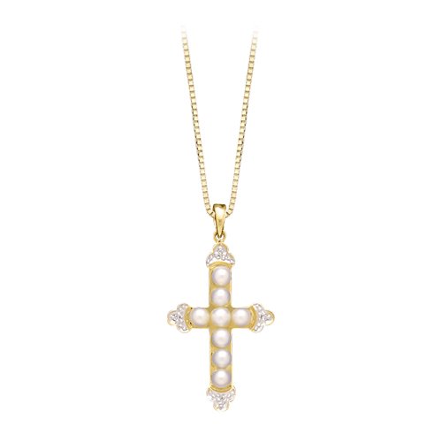See more technical detailsBuy 14K Yellow Gold 0.02 ct. Diamond and Pearl Cross Pendant with Chain Now