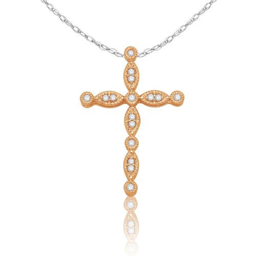 Buy 10k Rose Gold Antique-Style Diamond Cross Pendant (.07 cttw, H-I Color, I2 Clarity), 18" Now