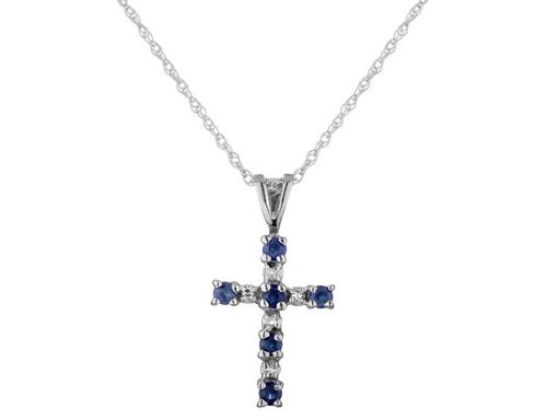 See more technical detailsBuy Sapphire and Diamond Cross Pendant 3/10 Carat (ctw) in 14K White Gold with Chain Now