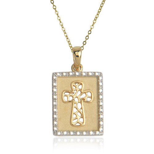 See more technical detailsBuy Yellow Gold Overlay Sterling Silver Cross Rectangular Pendant w/ Diamond Accent, 18" Now