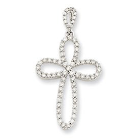 14k White Gold Diamond Cross Pendant - .56 Carat Diamond Weight in 14k White Gold - - - Product Attributes: - Diamond -- Open back -- Polished - - JewelryWeb Style: QTP106801NC - FREE gift-ready jewelry box