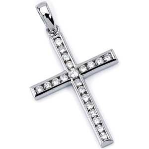 3/4 Ct.T.W. Diamonds, 14K Gold, Diamond Cross Pendant Beautiful cross pendant available in 14K white or yellow gold. Completing this gorgeous piece is 3/4 carat of sparkling Round brilliant cut diamonds. Stunning! Gold White 14K Approx Wgt 2.66 gms. Height 31.75 mm Finish Satin Diamonds Round Brilliant Cut Color Avg. HI Clarity Avg. SI Approx Carat 0.75 Ct.T.W. # Of Pcs. 21 Setting Channel Availability In Stock Shipping Usually in 24 to 72 hours Notes Select Yellow Gold to order in Yellow Gold. Free Standard Shipping!. 100% Satisfaction Guaranteed!. 30-Day Return Policy. Sku# JDP13W-75