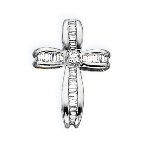 See more technical detailsBuy 14K White Gold 3/8 ct. Round and Baguette Cut Diamond Cross Pendant with Chain Now