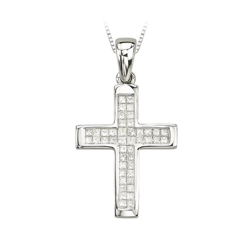 See more technical detailsBuy 14K White Gold 3/8 ct. Princess Cut Diamond Cross Pendant with Chain Now