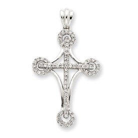 14k White Gold Diamond Cross Pendant - .35 Carat Diamond Weight in 14k White Gold - Product Attributes: - Diamond - Open back - Polished - Polished Back - JewelryWeb Style: QTP106824NC - FREE gift-ready jewelry box