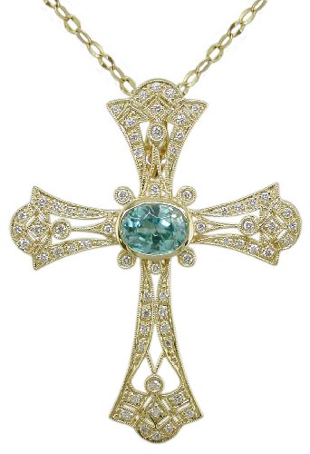 See more technical detailsBuy 18KT Blue Zircon & Diamond Cross Pendant w/ 16-inch 18KT Chain Now