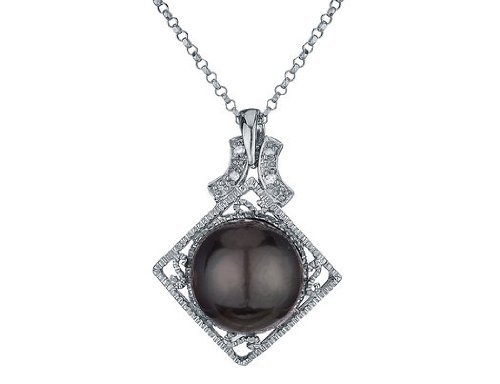 See more technical detailsBuy Black Tahitian 11mm South Sea Drop Pearl Pendant with Diamonds in 14K White Gold with Chain Now