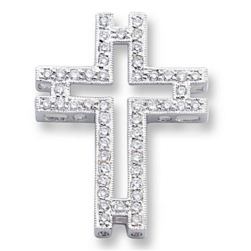 This cross has a very interesting style. It has an airy feel with it's open center different from many other crosses. It's traditional with a hint of fashion. The diamond accent really makes this piece special.